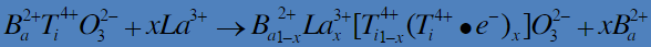 1.施主摻雜半導體化,一般高價摻雜La3+、Y3+、Sb3+、Nb5+、Ta5+